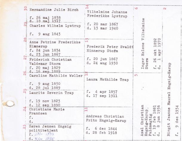 Ellinor Engsig-Karup og Jørgen Bjerth-Jensen Johannes Engsig-Karup og Gurli Møller-Sørensen Preben Trap Engsig-Karup og Martha Johanne Balslev Thorkild Storm Engsig-Karup og Ruth Bonnevie Birgit Jeanne Maurel Engsig-Karup og Kai Johan Madsen |