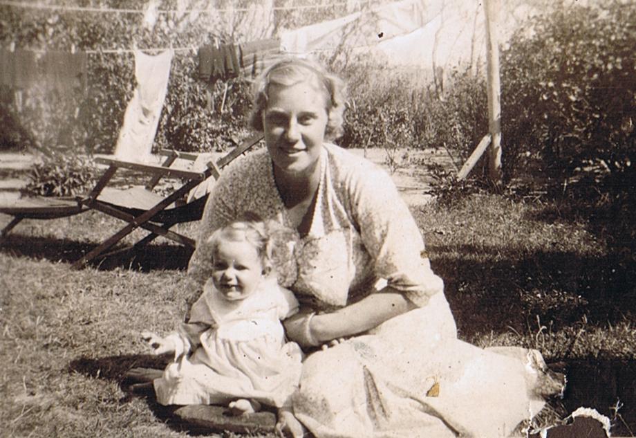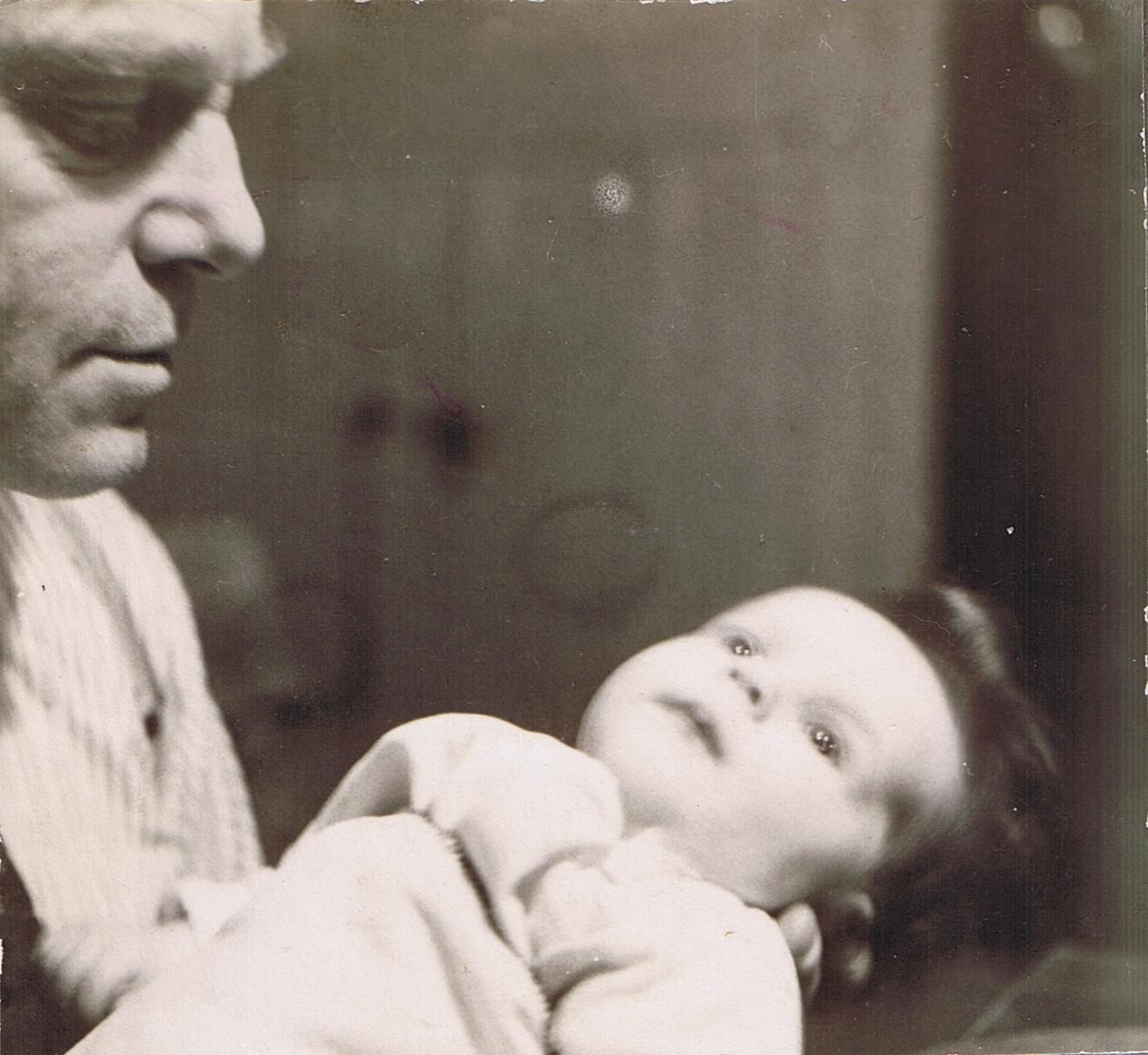 På fotoet ses mor i favnen hos sin far, Axel. Mor var kun 1½ år gammel, da hun