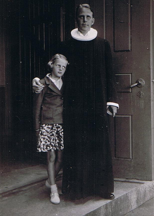 Bitten sammen med storebror Preben foran Vinderød Kirke ved Frederiksværk. Måske
