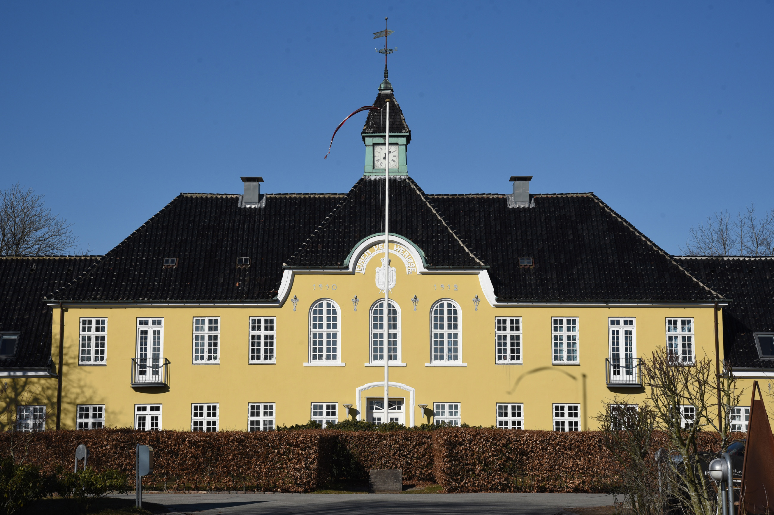Hovedbygningen for Flyvestation Værløse, påbegyndt 1910. Foto: Poul Madsen, 13. marts 2022.