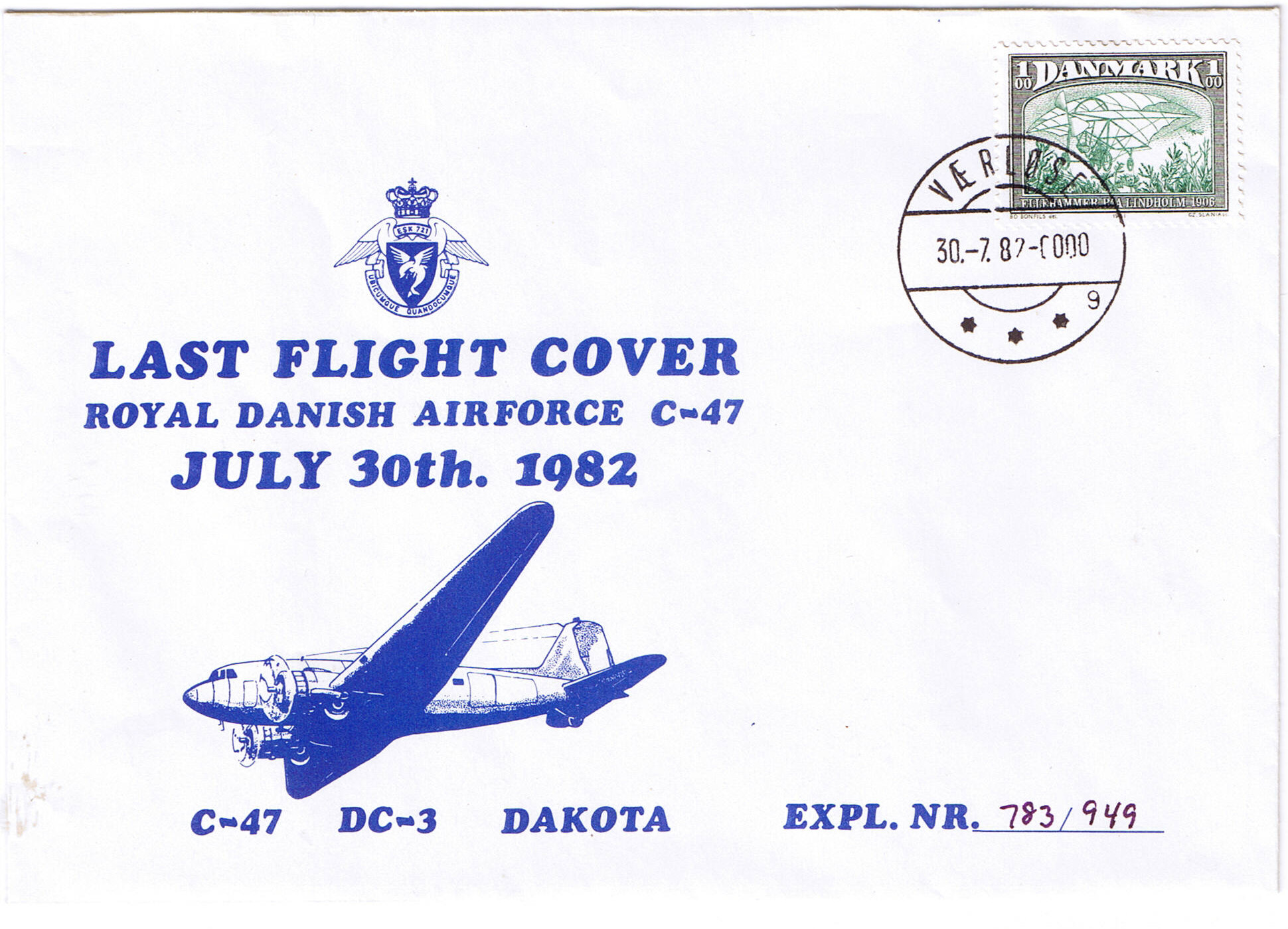 Last Flight Cover med C-47 d. 30. Juli 1982. Dette eksemplar var min fars.