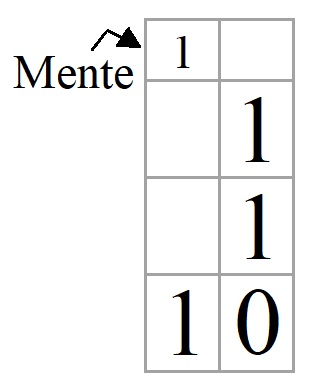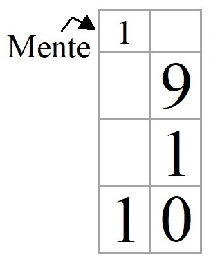 Når man nåede op til 9 og lagde 1 til, startede man forfra på 0 (nul), men skulle huske en "mente". Menten skulle føres ned foran nullet: