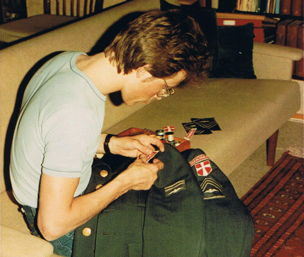Herover: Påsyning af sergent-distinktioner, maj 1982. Foto: Jeanne Madsen.