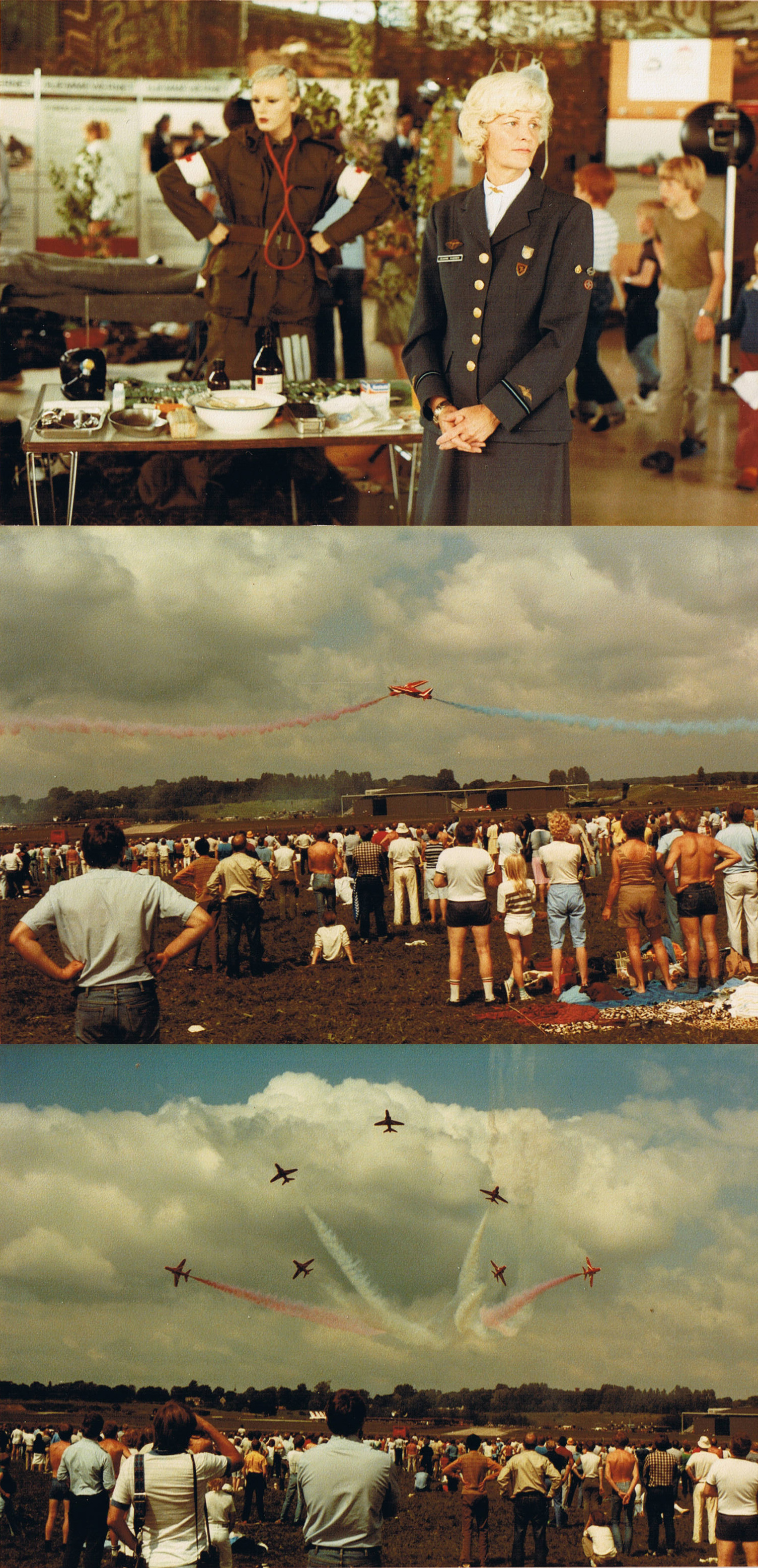 Åbent Hus på Flyvestion Værløse, juni 1984. Øverst: Min mor på stand for Hjemmeværnets Tjenestestedskorps. Alle fotos: Kai Madsen.