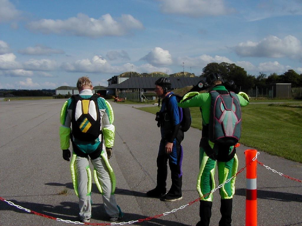 Herunder: Leif tv, Björn Olson (midt) og Johnnie th ved rullebanen hen til Hangar 2. Foto: Richard Madsen [9-6].