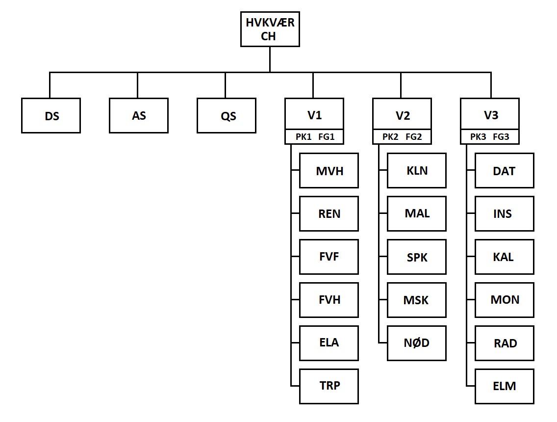 Hovedværkstedets organisationsdiagram som det så ud 1990-95 [10-2].