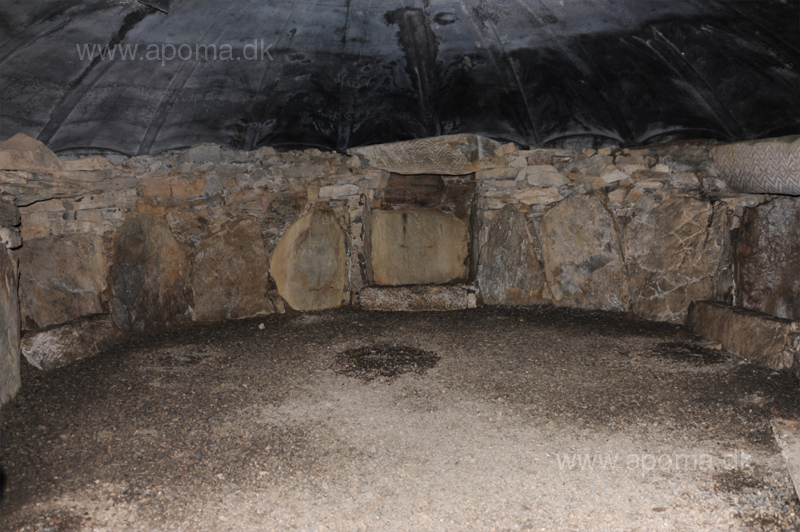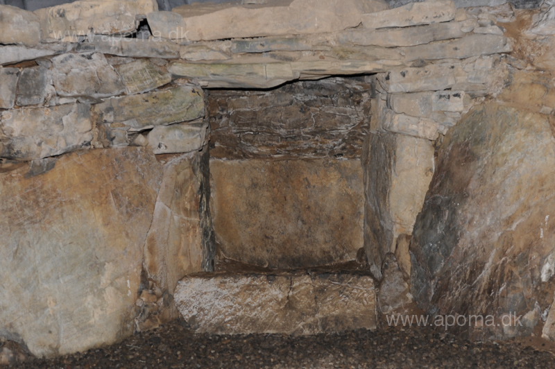 Billedet her viser det midterste sidekammer. Side kamrene er ikke så dybe i modsætning til sidekamre andre steder, fx Loughcrew Cairns.