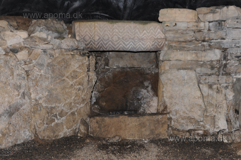 Billedet her viser sidekammeret til højre. Læg mærke til den overliggende sten med graveringerne.