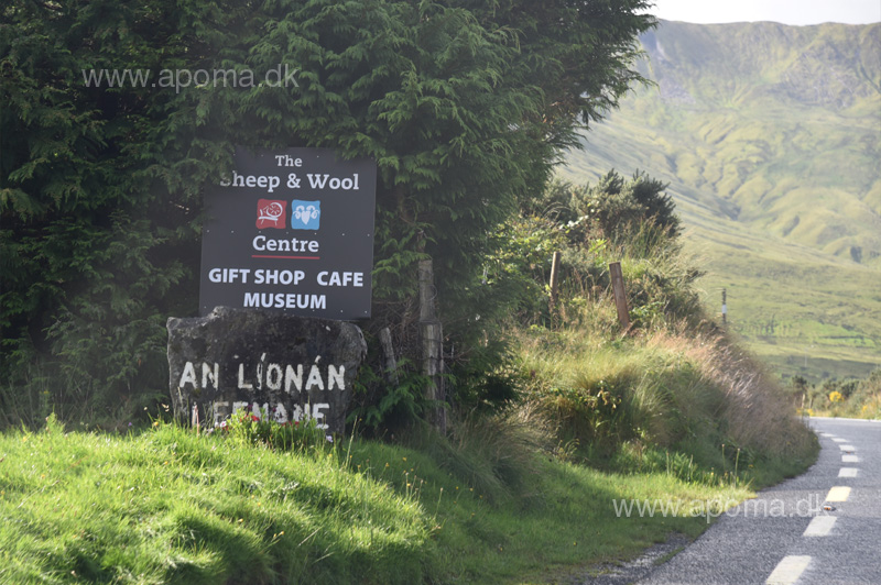 Leenaun er en bitte landsby med 1-2 restauranter og et tilsvarende antal pub'er. Sørg for at tanke her: benzin, kaffe og mad, for der kan være langt til de næste rastesteder, ikke så meget i distance som i tid. Billedet her er taget ved visitorcenteret The Sheep & Wool. Centeret har en god souvenirbutik og cafe med både varme og kolde drikke. Man kan også købe wienerbrød og sandwiches.