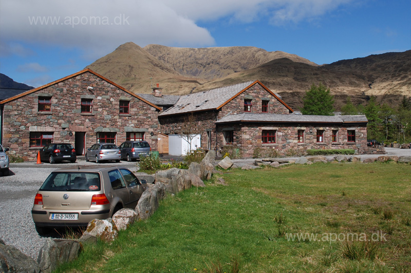 Fotoet er taget fra parkeringspladsen ved visitorcenteret i Leenaun.