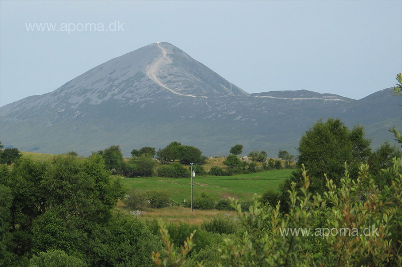 Turen fra parkeringspladsen i den tilstødende landsby, Murrisk, til toppen tager et par timer. Tusinder af pilgrimme i tidens løb har gennemført turen. Nogle har gjort det med eller uden vandrestøvler, nogle på bare tæer og atter andre har ønsket at gøre turen ekstra smertefuld ved at tage turen op på knæ! Stien forløber op ad siden i venstre side - man kan ikke se stien på fotoet, til gengæld kan man lige ane kapellet på toppen.