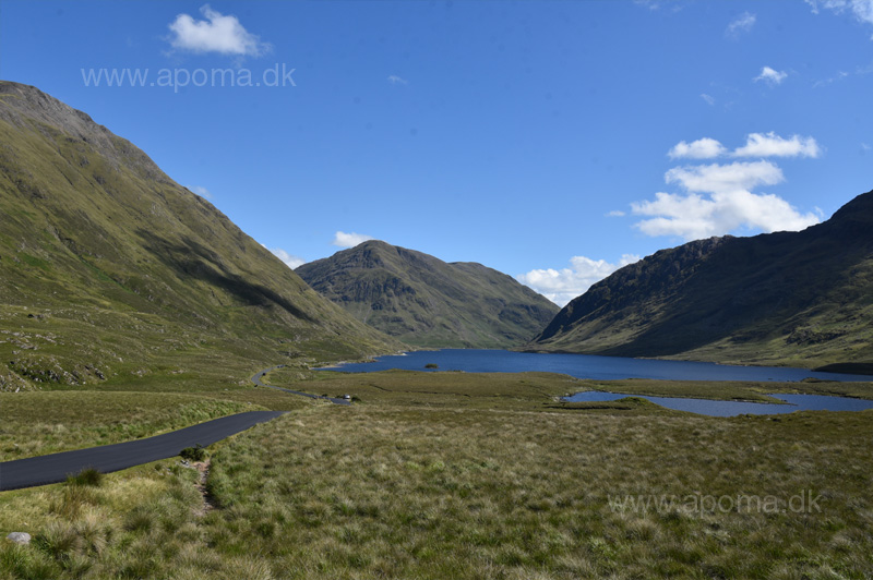 Syd for Cregganbuan åbner bjergene sig, og man kommer ind i en dal med en langstrakt sø - Doo Lough.